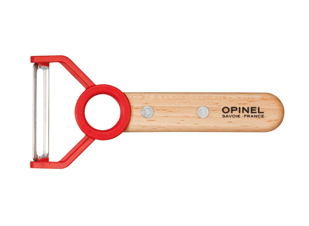 The stainless steel blade with educational ring helps position fingers and peels easily with a pulling action.