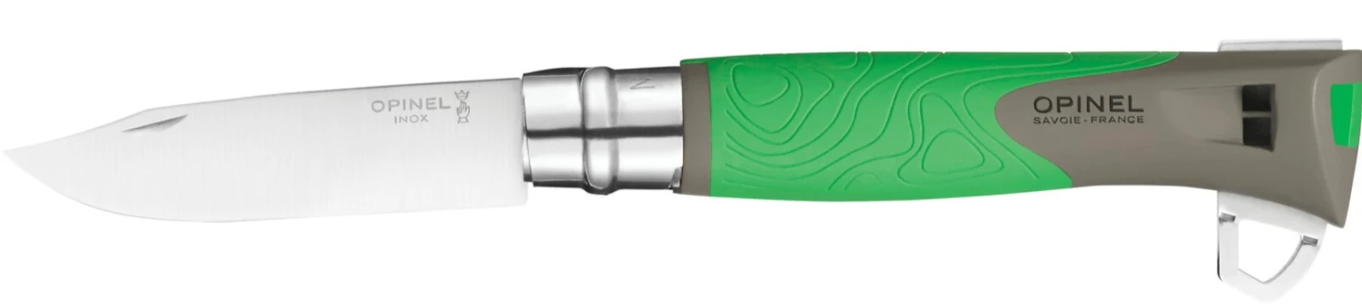 Il est équipé d’un manche résistant en polymère, d’un sifflet d’une portée de 300 m fonctionnel même en cas de mauvaise météo, d’un allume-feu et d’un crochet coupant. Tout ces equipements font de lui le compagnon idéal pour toutes vos sorties en nature.