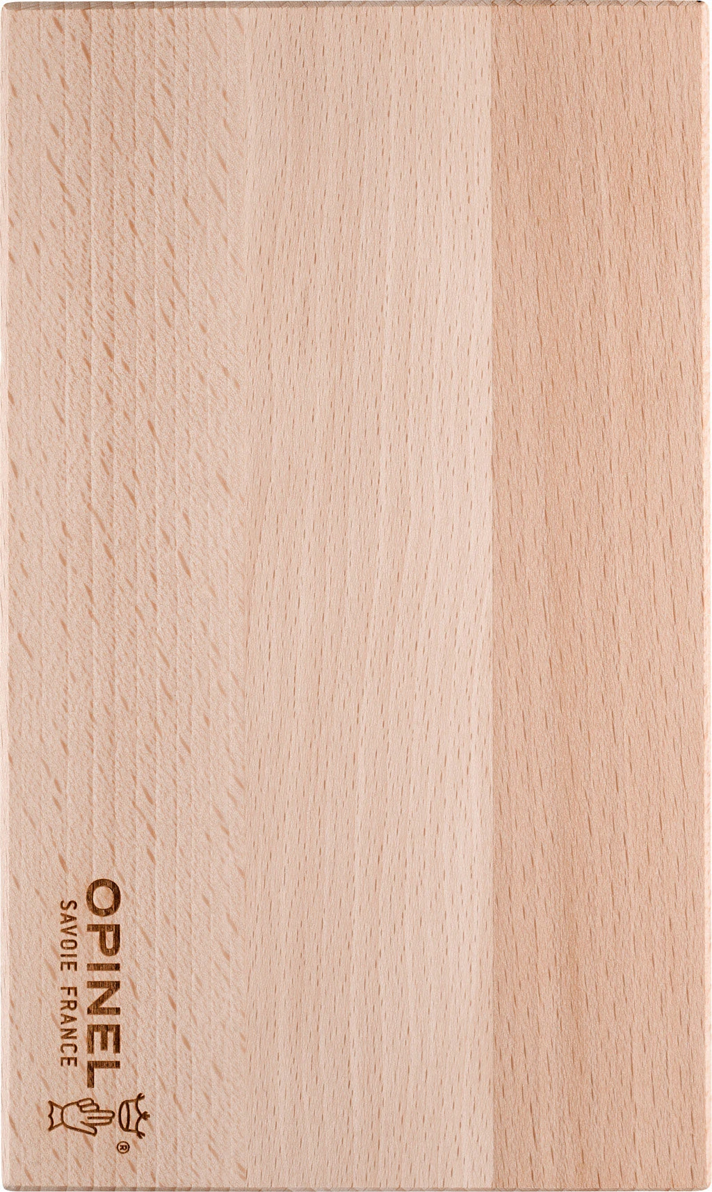 • Manche: Le hêtre est le bois le plus utilisé pour la fabrication des manches Opinel. Issu d’exploitations françaises, il est dur, résistant et facile à travailler. D’un aspect homogène, sa couleur claire varie du jaune au rosé. Il est reconnaissable par la présence de nombreux petits traits sombres. Le manche est verni pour être mieux protégé contre l’humidité et les salissures.