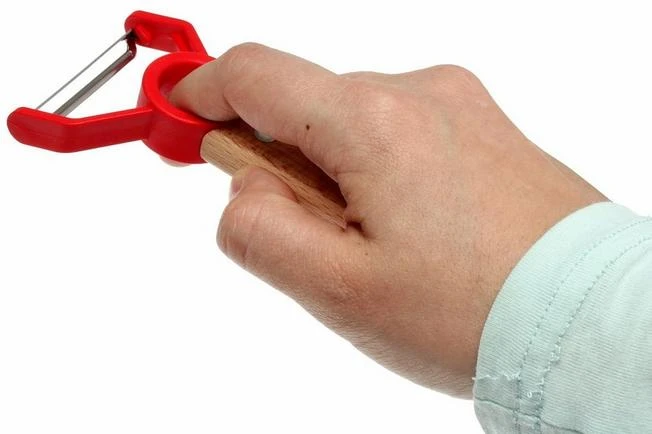 Opinel has marketed a kitchen knife line specifically for children: ‘ Le petit chef ‘. With the peeler from this line, the kids can help out in the kitchen safely. The ring in the design helps to keep your fingers automatically in the right place without risk of injury and grants quick and easy results. Of course the knife is still sharp, so supervision remains prudent.